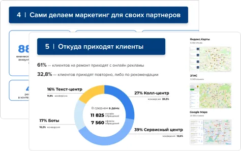 1) Мощная маркетинговая команда создает высокую узнаваемость и много рекламы сервисного центра для клиентов.